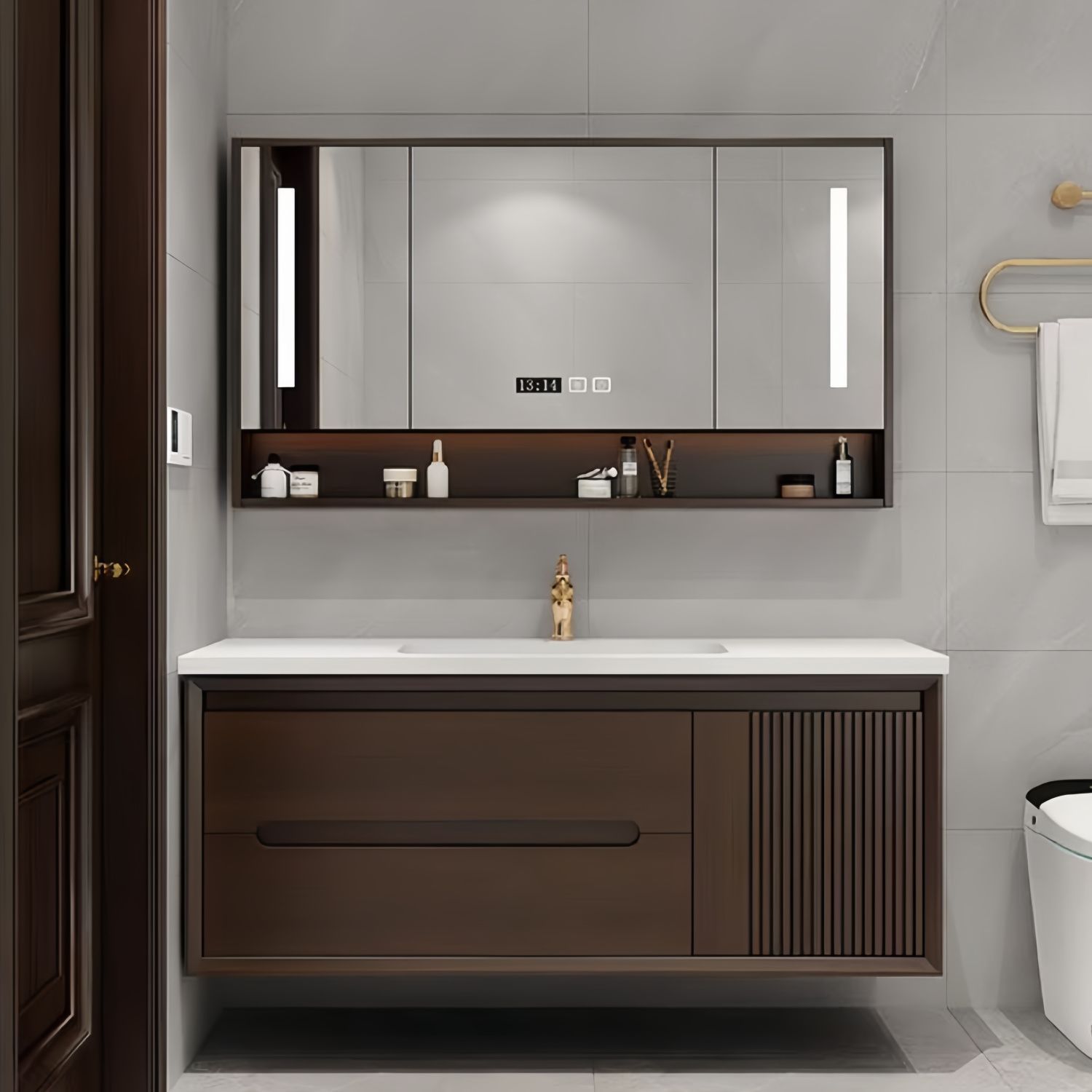 加工シンプル岩板熱曲げ一体盆可丽耐実木浴室キャビネットセット洗面台洗面台トイレ