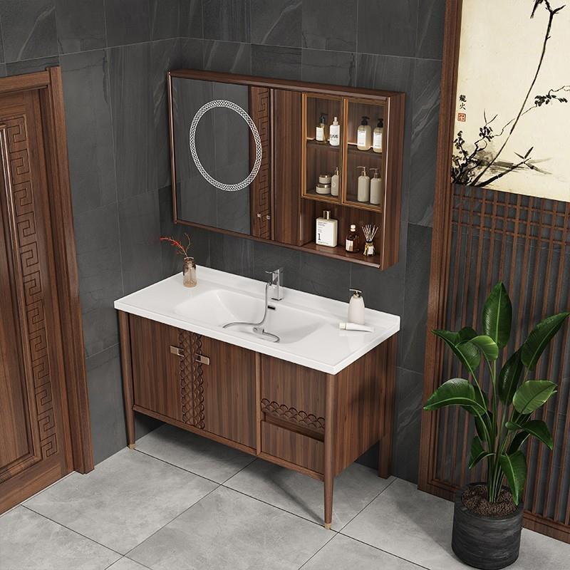 オーク新中式焼き漆一体セラミック洗面器浴室キャビネットトイレ床置き洗面器烏金木洗面c