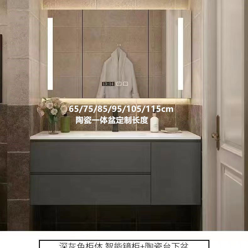 65/75/85/95/105/115一体セラミック洗面器折り畳み式風水鏡浴室キャビネットの組み合わせ