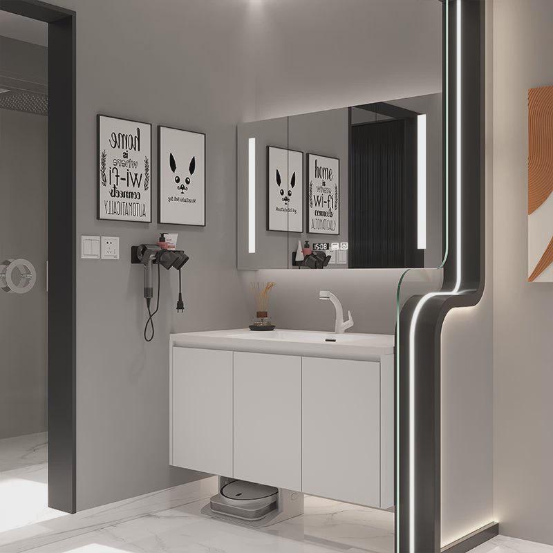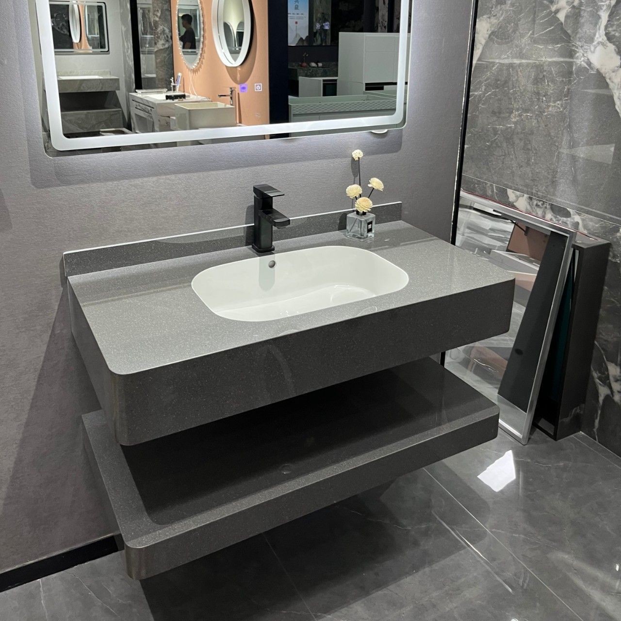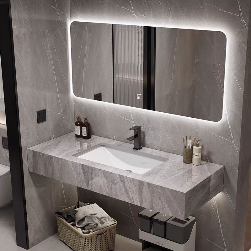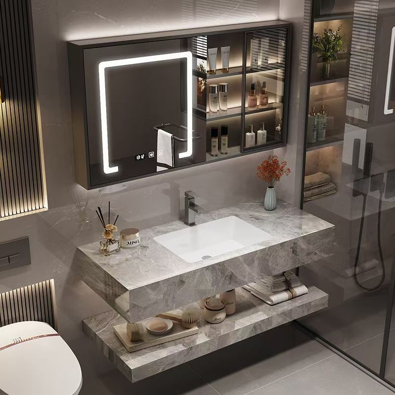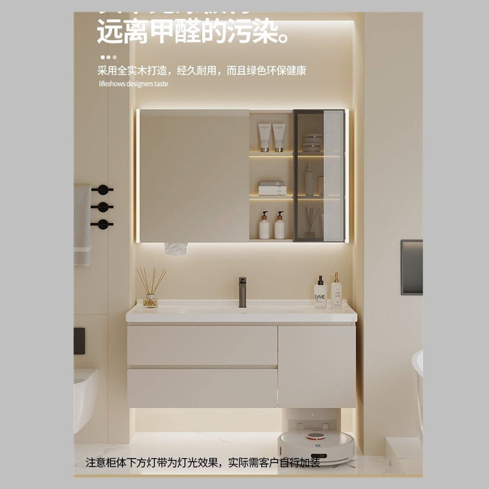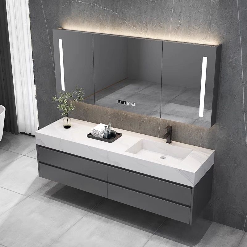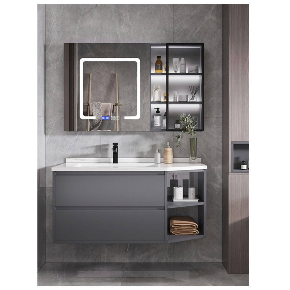 スマート岩板一体台盆浴室キャビネットセット実木軽豪華洗面池セット洗面台浴室キャビネットグレー