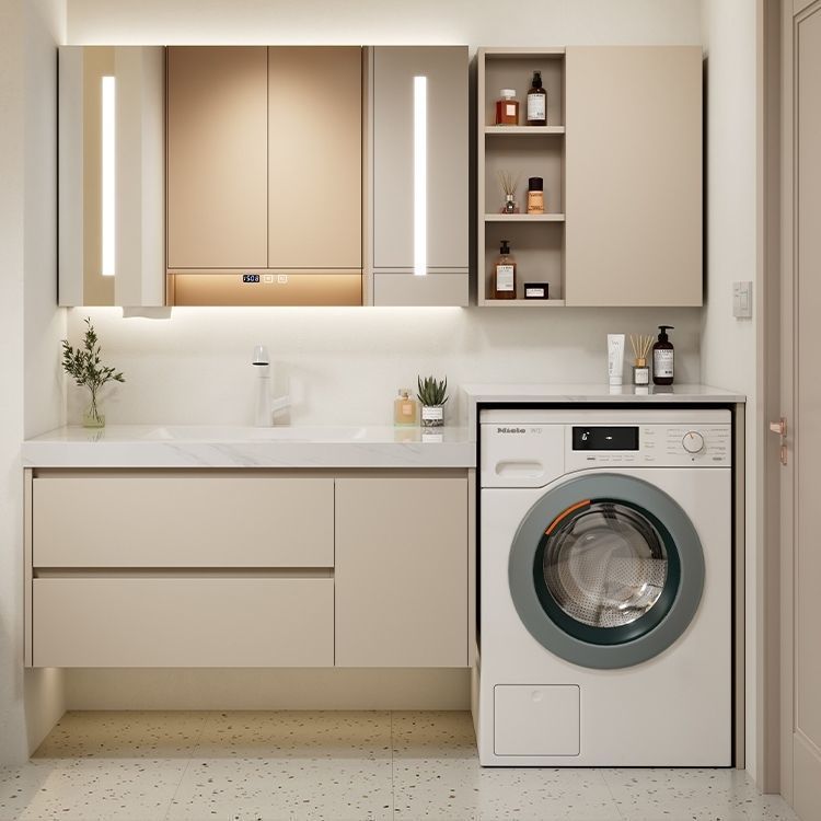 洗濯機ベランダ一体型キャビネット岩板セラミックシームレス一体盆クリーム風浴室キャビネット洗面洗面台加工