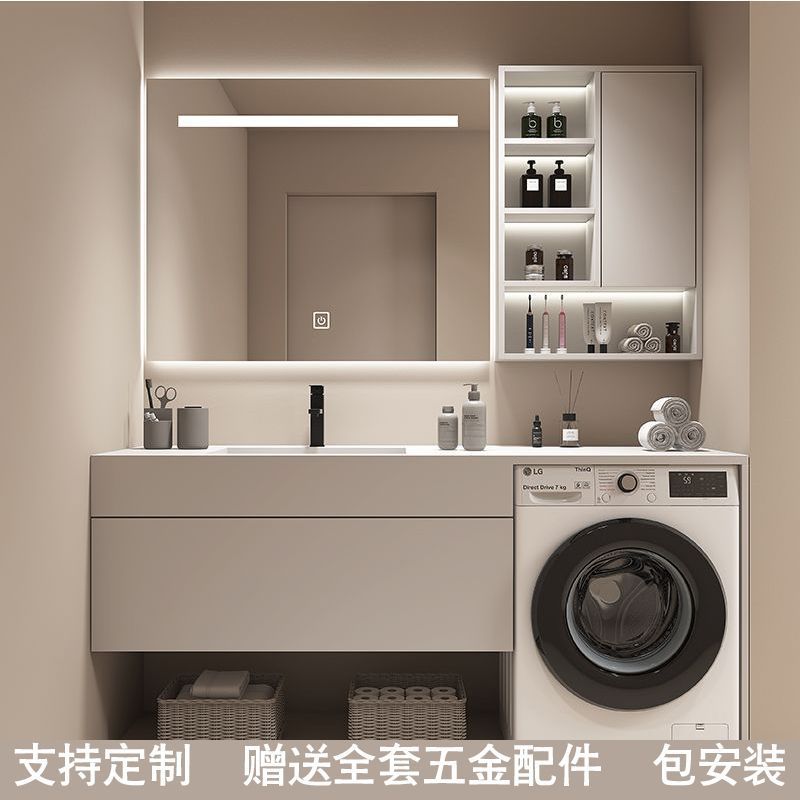 モダンなライトクリームスタイルのセラミックロックボードバスルームキャビネット洗濯機キャビネット一体型バスルーム手洗いシンク