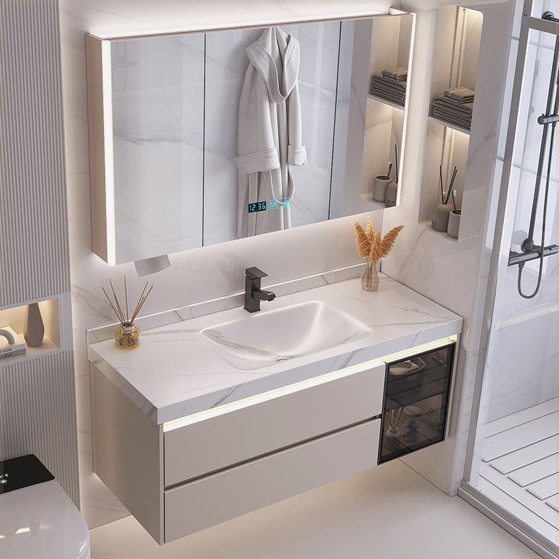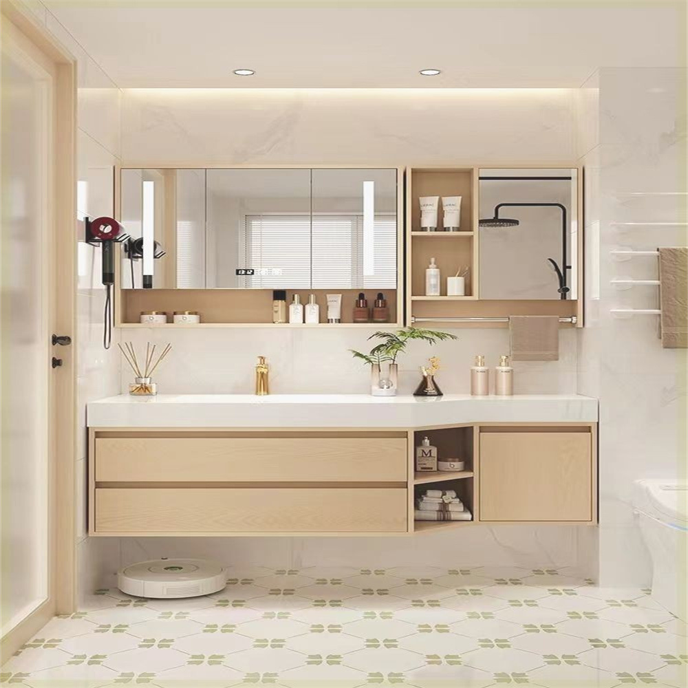 モダンでシンプルなバスルームスレート一体型ハニカムアルミニウムバスルームキャビネット掃除ロボットインテリジェントストレージ洗面キャビネット