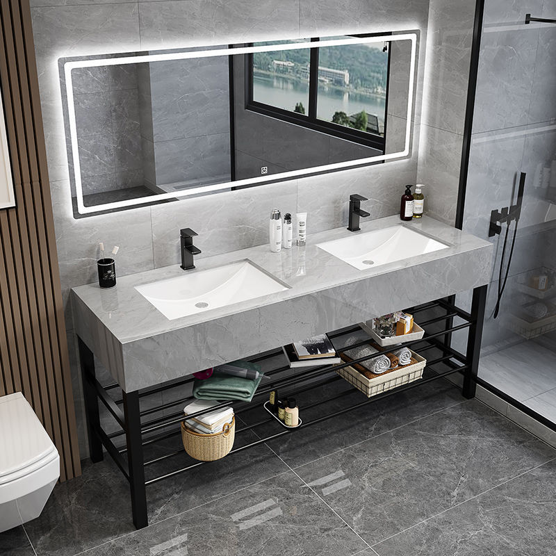 シンプルホテルスタイル床置きダブル洗面台浴室キャビネット公共トイレパンチフリーシンクセット