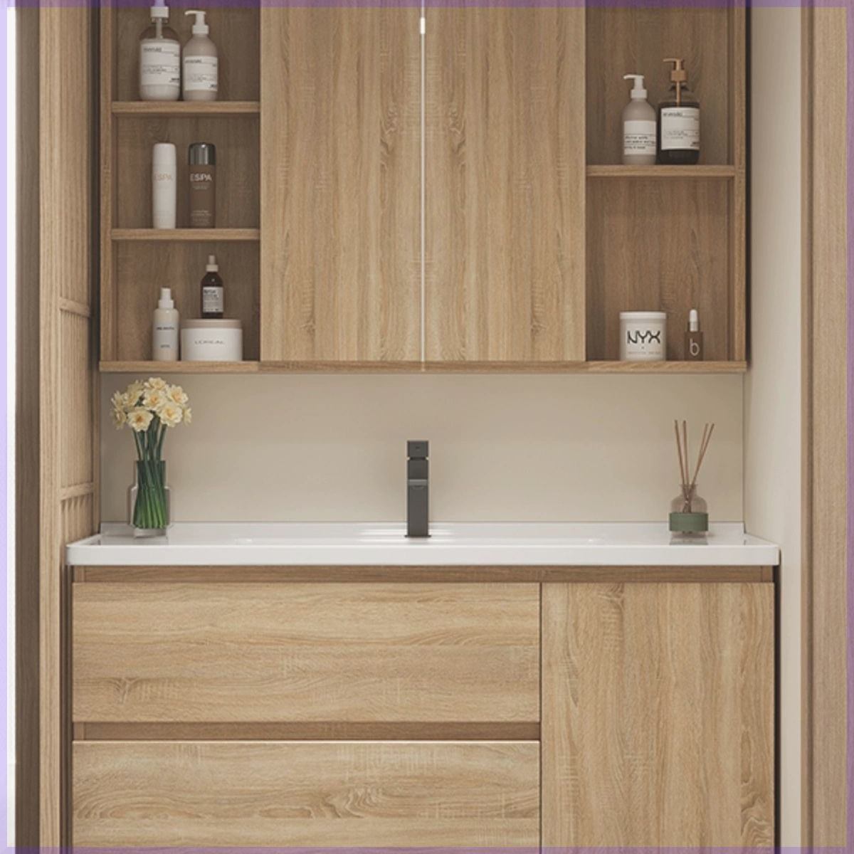 風水ミラーバスルームキャビネットセラミック一体型洗面器 63/73CM83cm 93/103cm 113CM 洗面器加工
