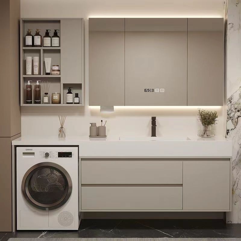 モダンで軽い高級スレートバスルーム洗面台キャビネット一体型シームレス洗濯機バスルームキャビネットサイド収納加工
