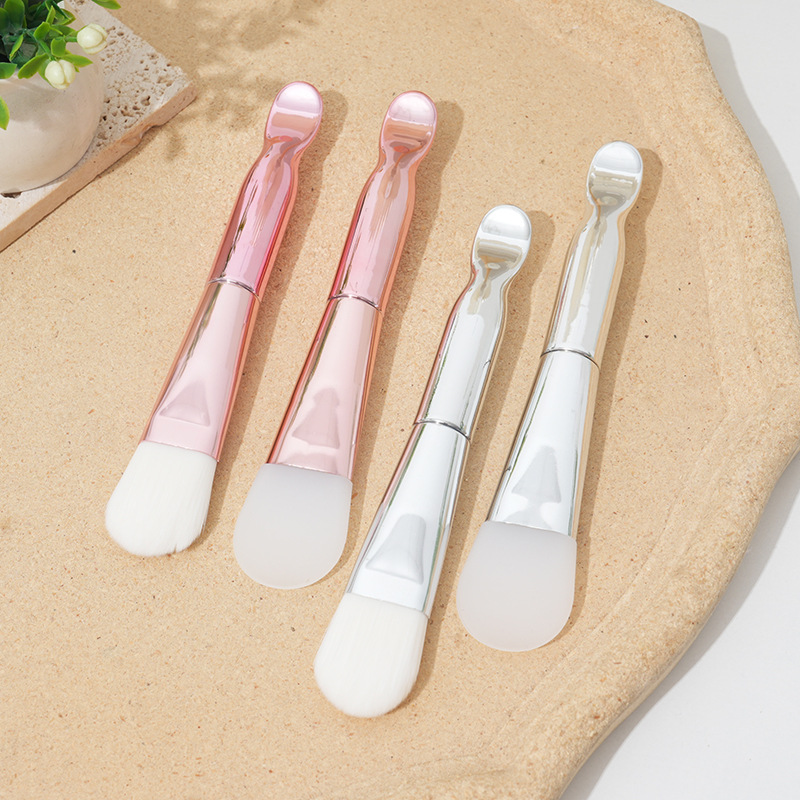 双頭マスクブラシソフト繊維毛マスクブラシメッキハンドル掘削スプーン泥ブラシ初心者美化粧ツール
