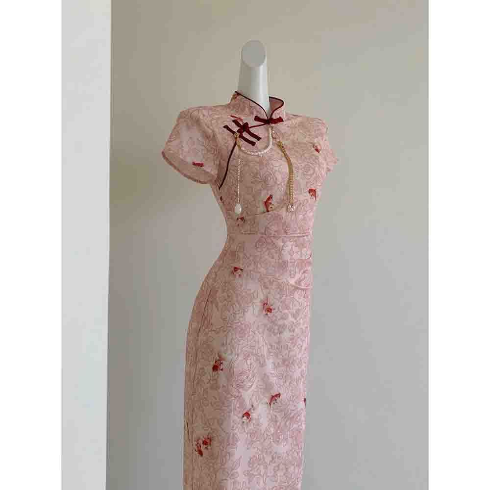 ピンクのチャイナドレス女性の夏の新しい中国ドレス女性の改良された高貴な気質デイリー蘇州ライト高級ハイエンド