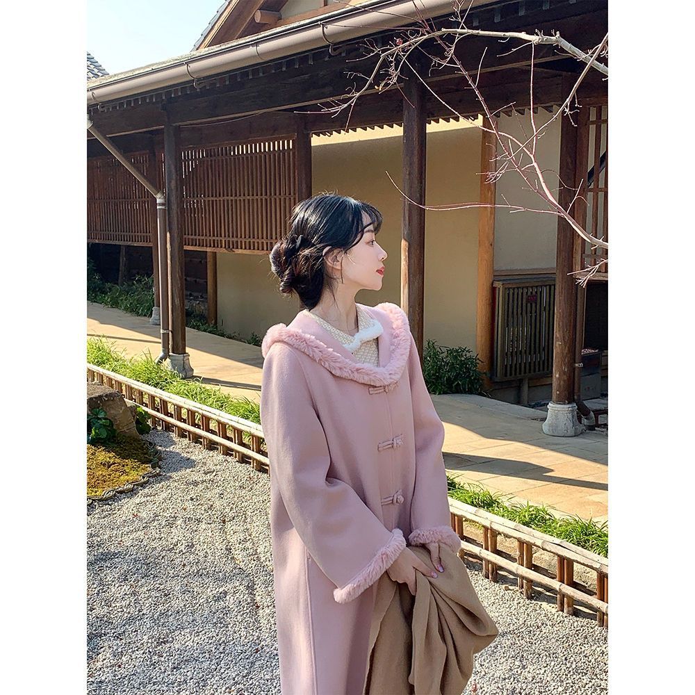 新しい中国式の大きい襟の手のバックルの両面の毛のコートの民族風の新年のコートの2023秋冬のタイプの女性