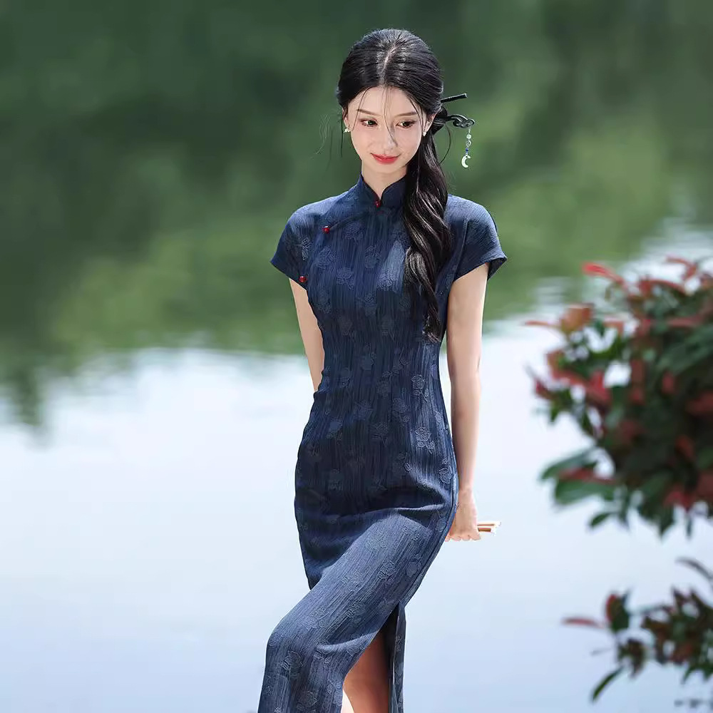 古法チャイナドレス2024年新中国風気質高級若年モデルレトロ改良ブルーワンピース女性夏