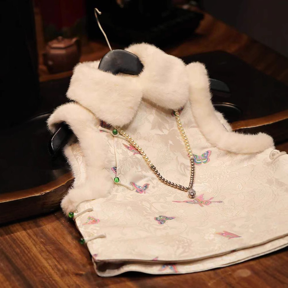 新中国式チャイナドレス馬甲女秋冬唐装女装中国風外着改良新年新年新年拝年服冬金