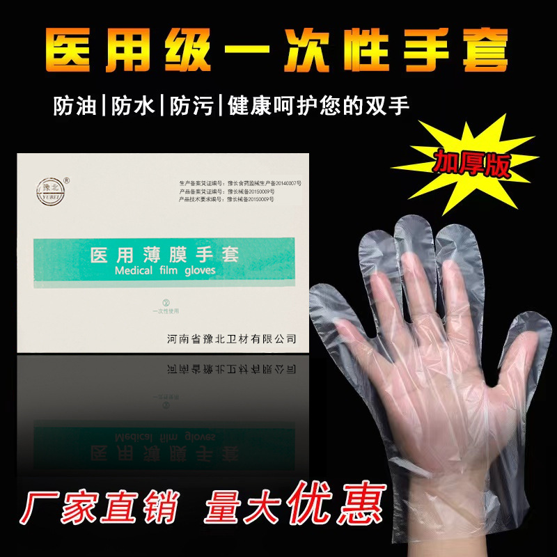 使い捨て PE 手袋プラスチックフィルム食品ケータリング医療グレードの厚い検査手袋フィット防汚