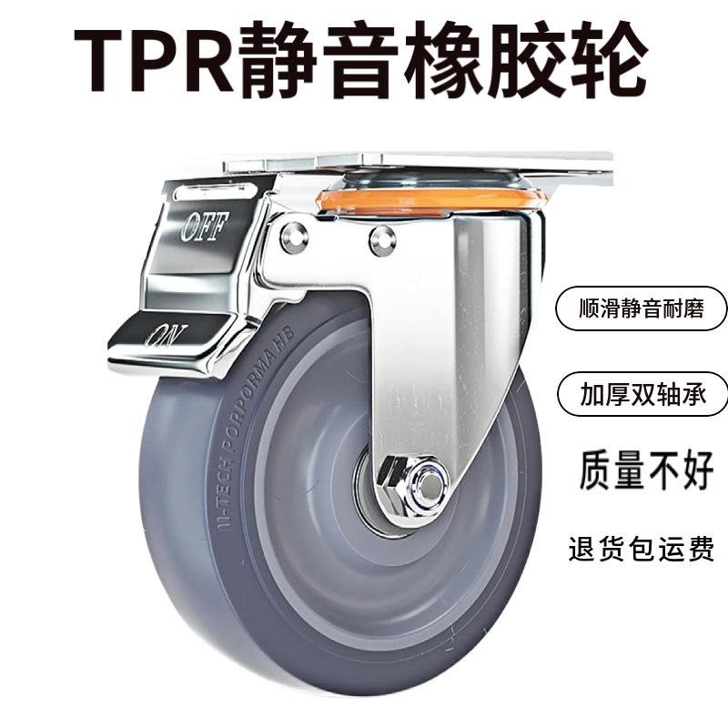 サイレントラバー 3インチ 4inch 5inch ユニバーサルブレーキホイール 高耐久性 指向性キャスター フラットベッドトロリーホイール