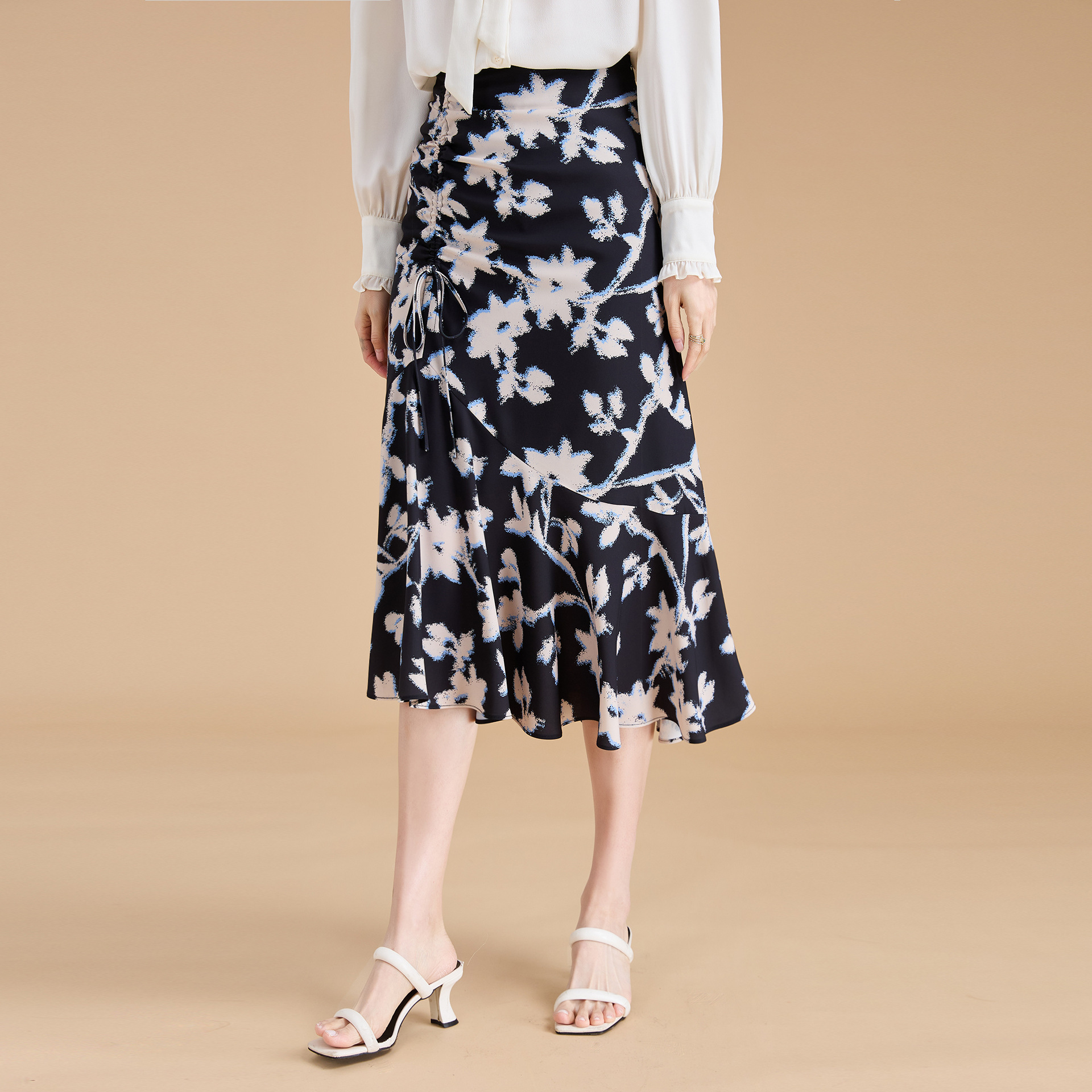 25クリアランス夏美しい不規則なレトロプリントフィッシュテールスカートデザイン花柄痩身Aラインスカート15567
