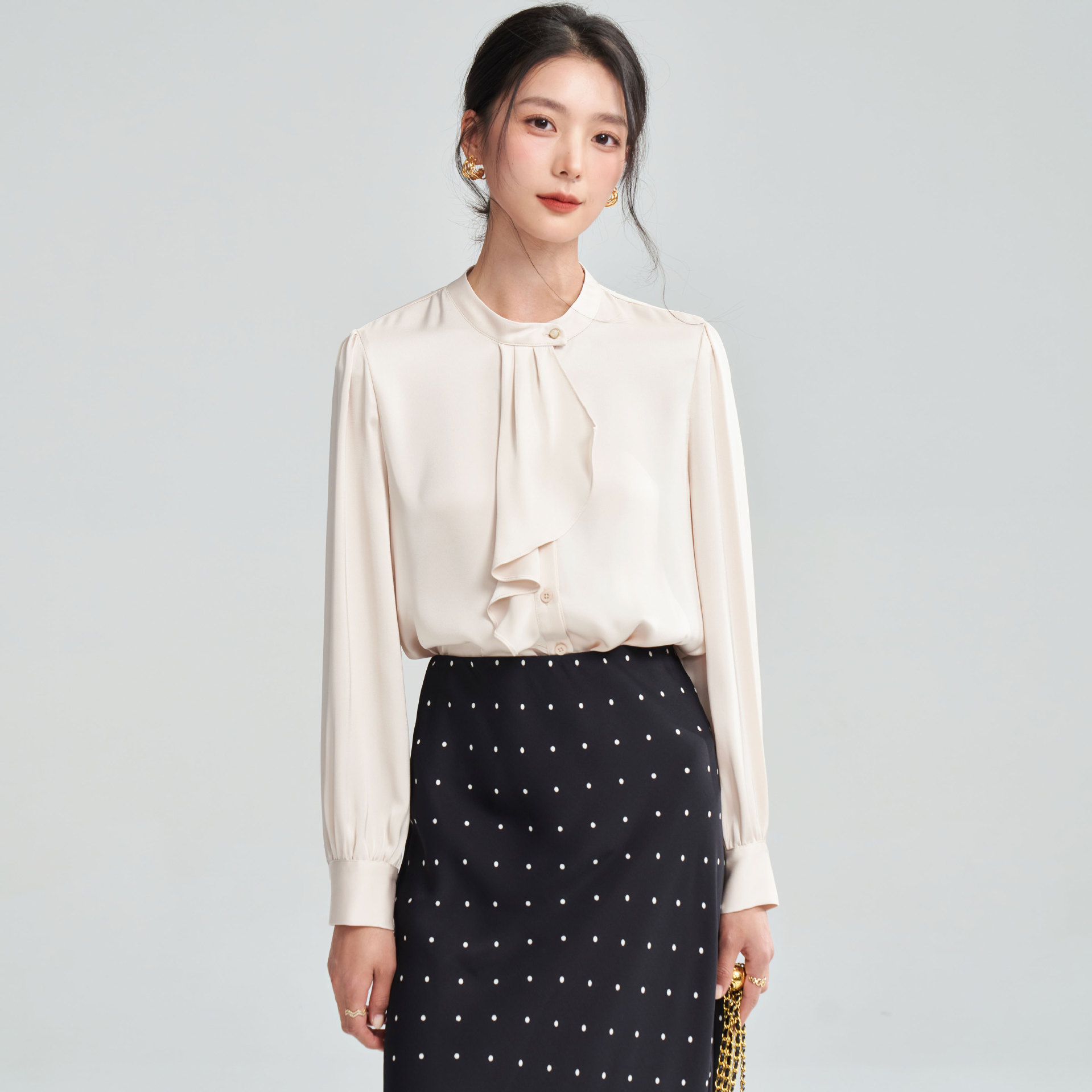25秋ライト職場優しいスタイル不規則なリボンシャツデザインOL通勤プロ長袖シャツ