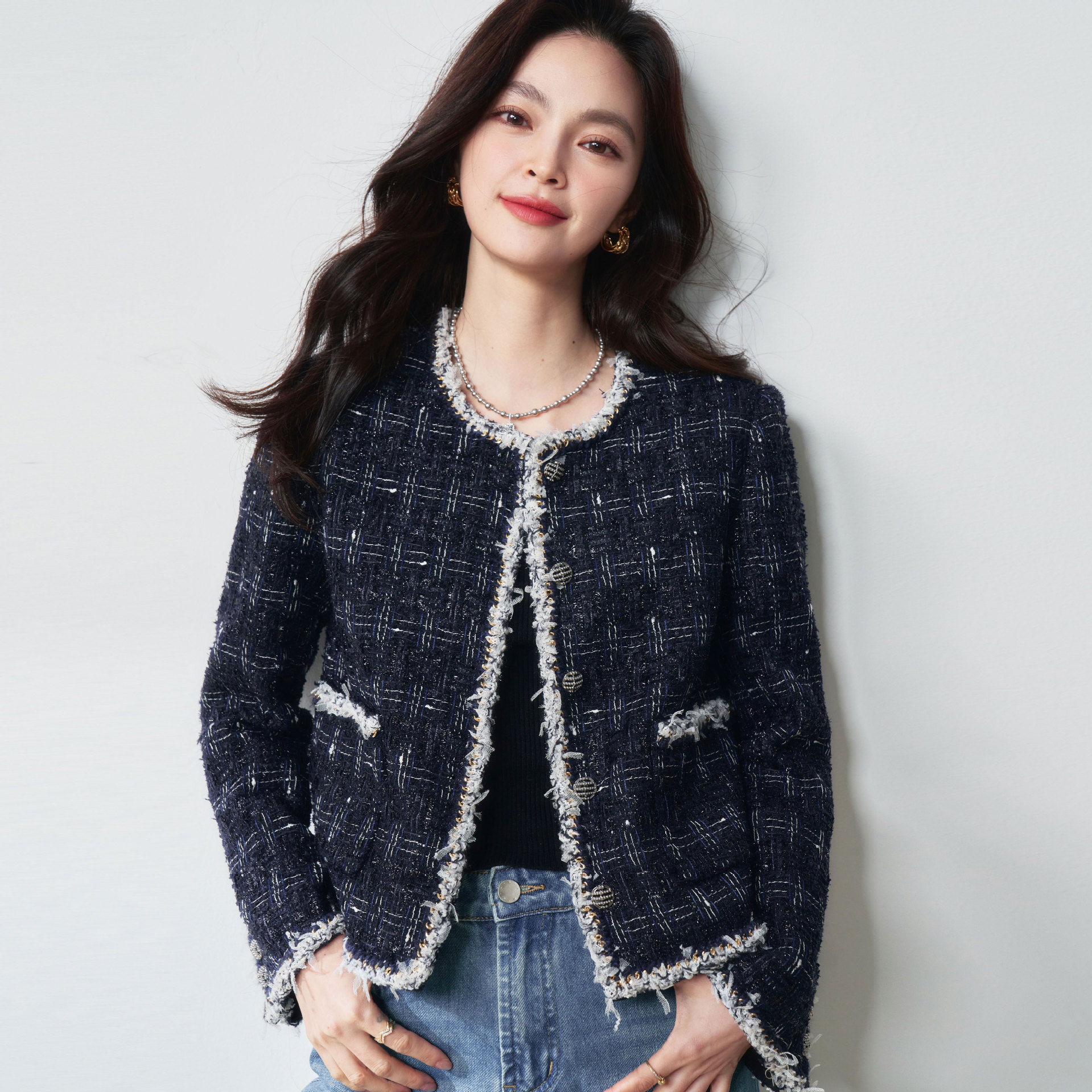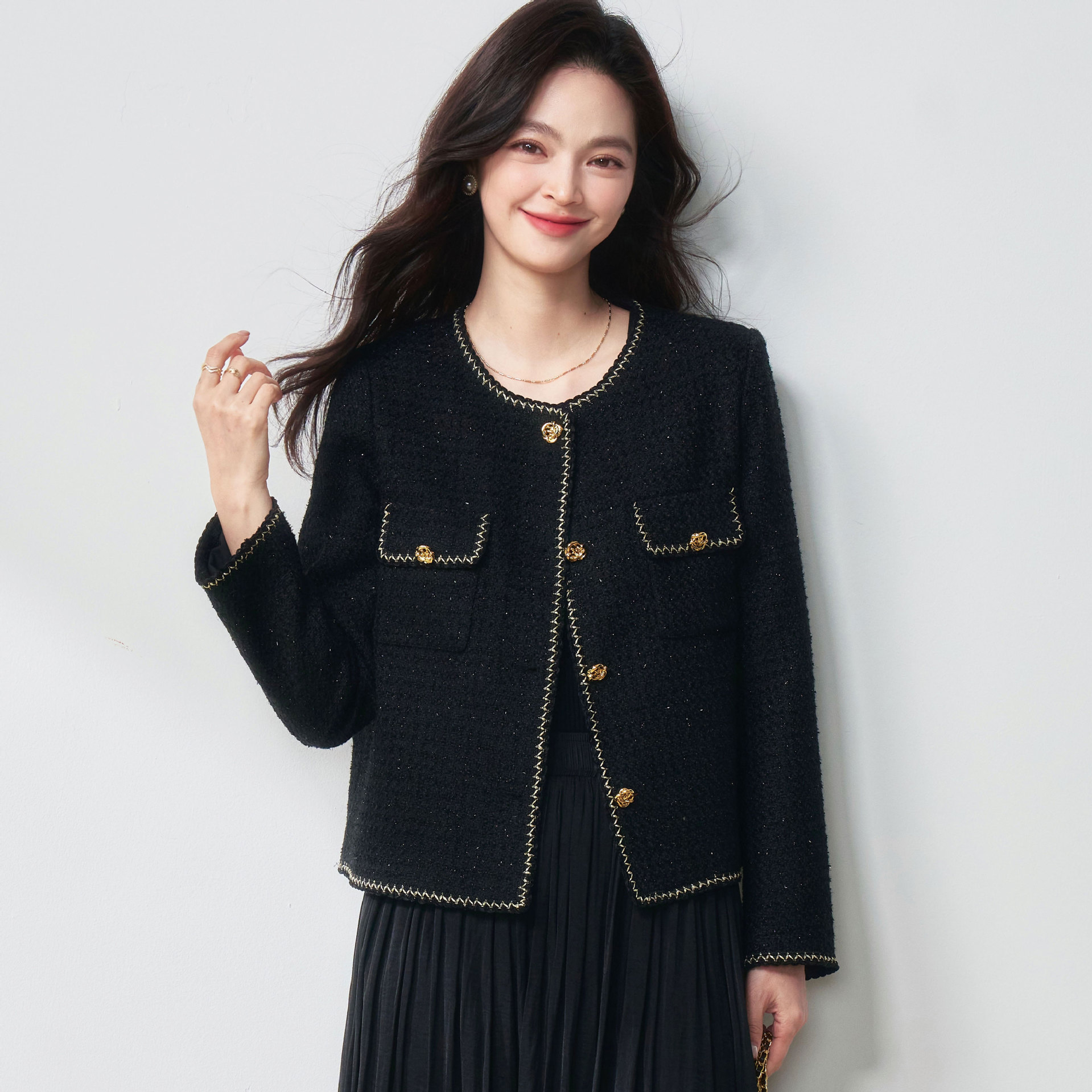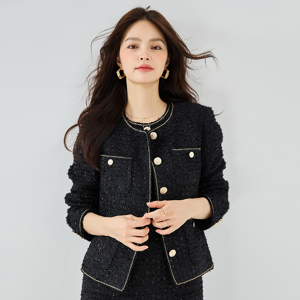 25秋フレンチセレブスタイルクラシックブラックツイードスモールフレグランスジャケット万能着痩せトップ15787