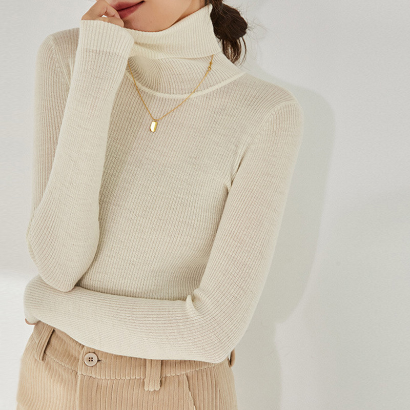 Shenghong 25 新しい秋のハイカラー長袖スリムストレッチウールニットベーシックボトムシャツトップス女性のための 12709