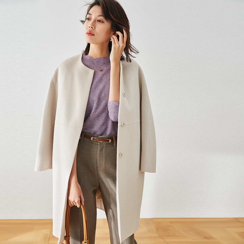 盛宏秋冬ラウンドネックミドル丈スリムダウンベストインナー両面ウールコート女性用13015