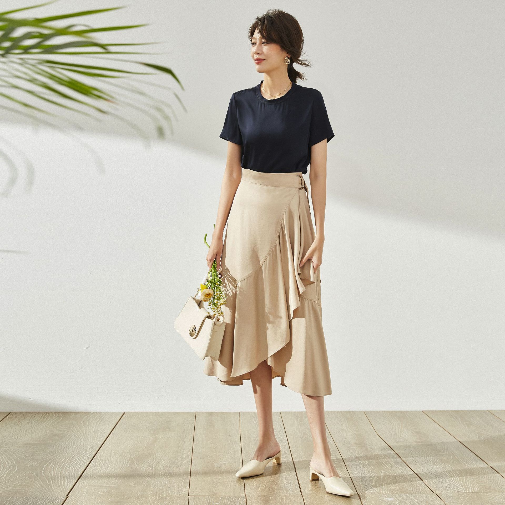 春の新作ブライトシルクパープルスモール*フレグランススタイル通勤スカート 12637
