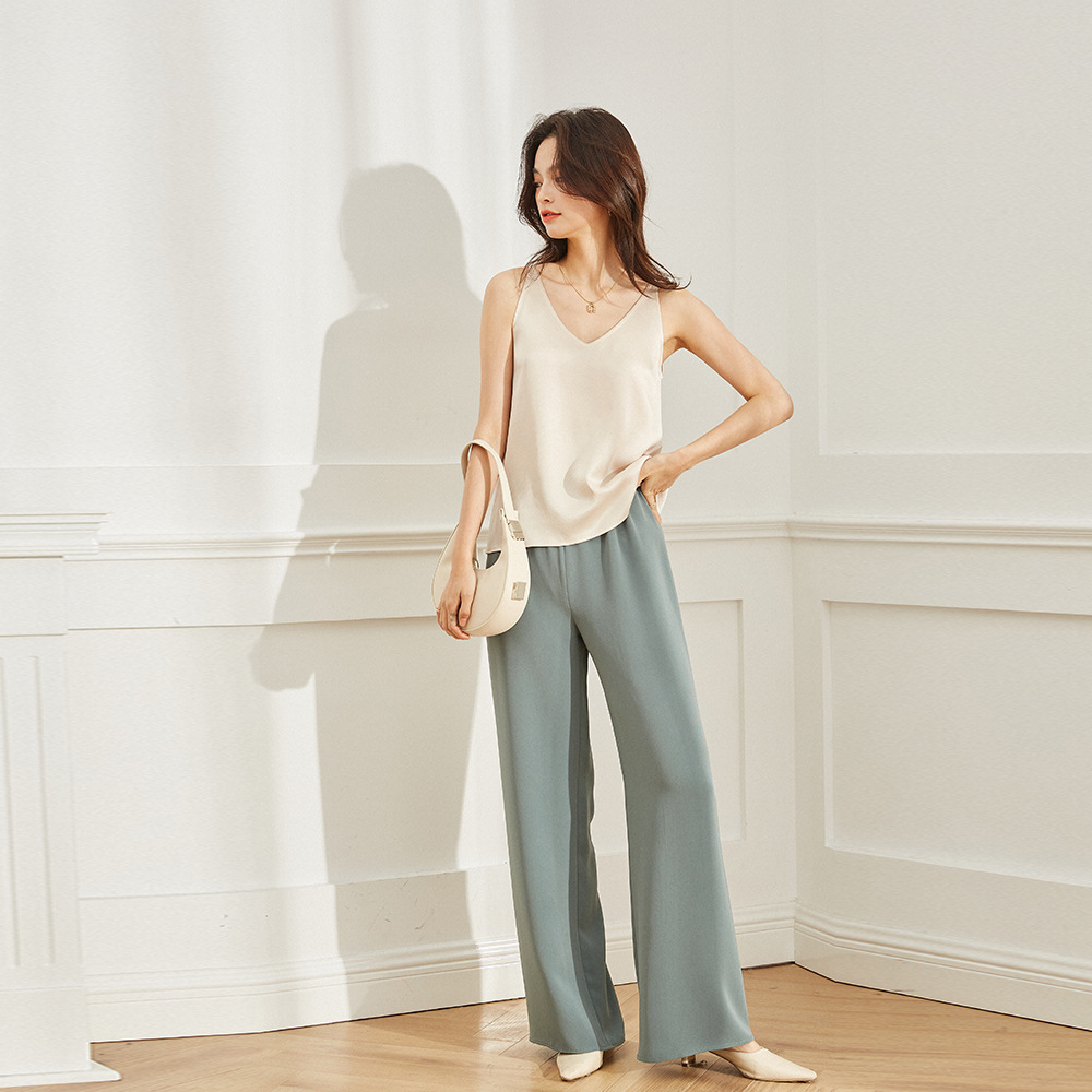 Shenghongxia 新しいアセテートストレート通気性ドレープ弾性ウエストワイドレッグパンツ女性のズボン 12886 9 ポイント 12887