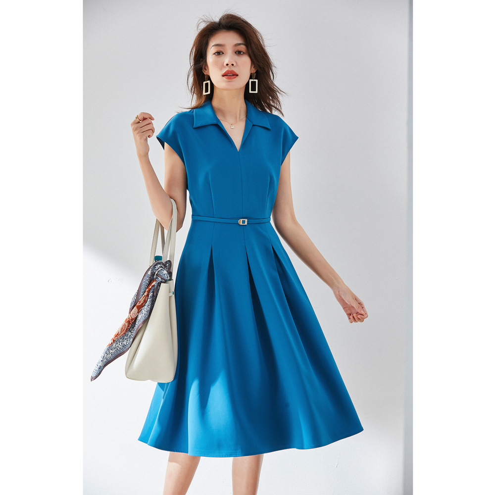 Shenghong クリアランス春夏新作ラペル和風通勤スリムカバースリーブ V ネックミドル丈ドレス 13151