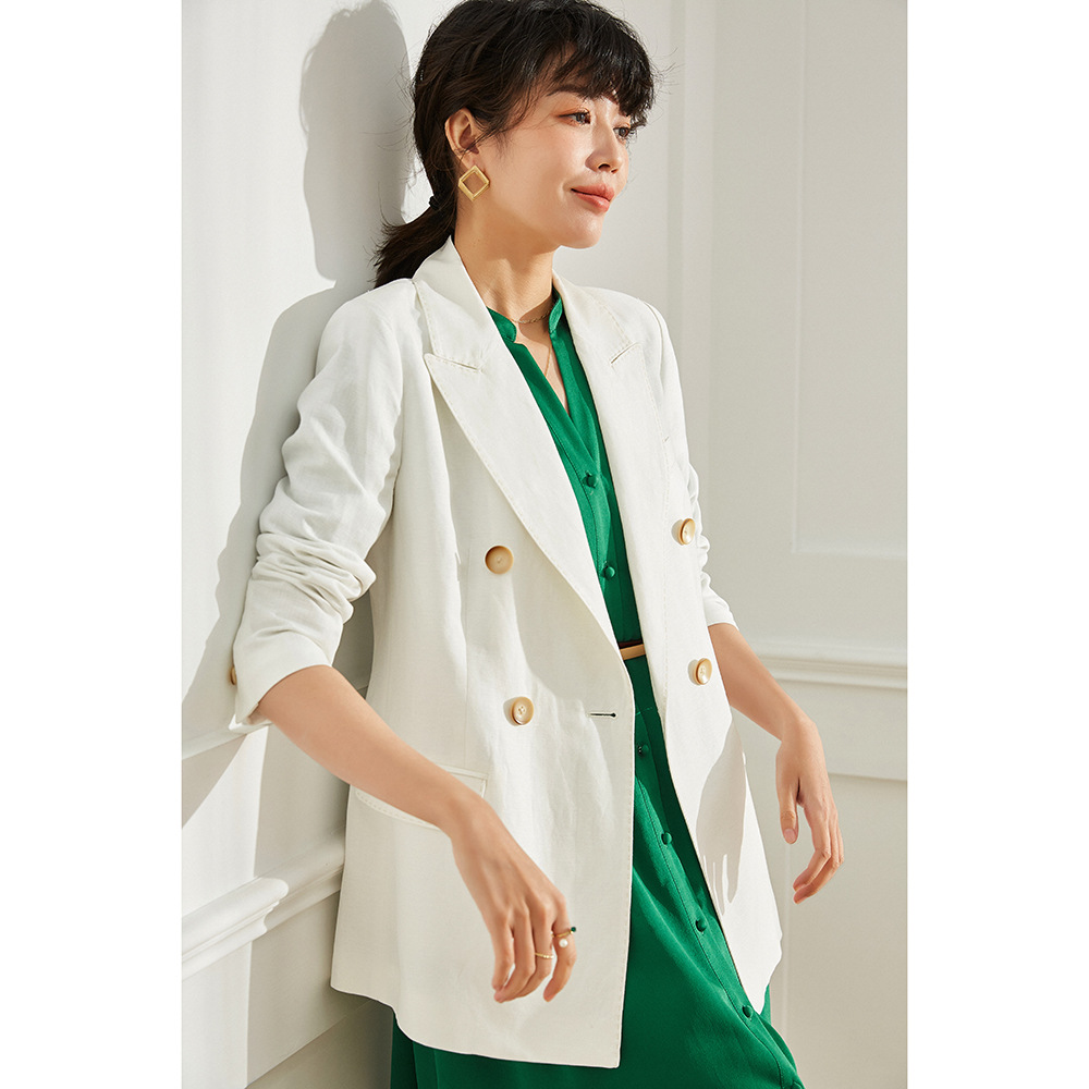 Shenghong 春の新ダブルブレストリネン気質通勤カジュアルスーツ女性 12826 スーツ 12827 パンツ