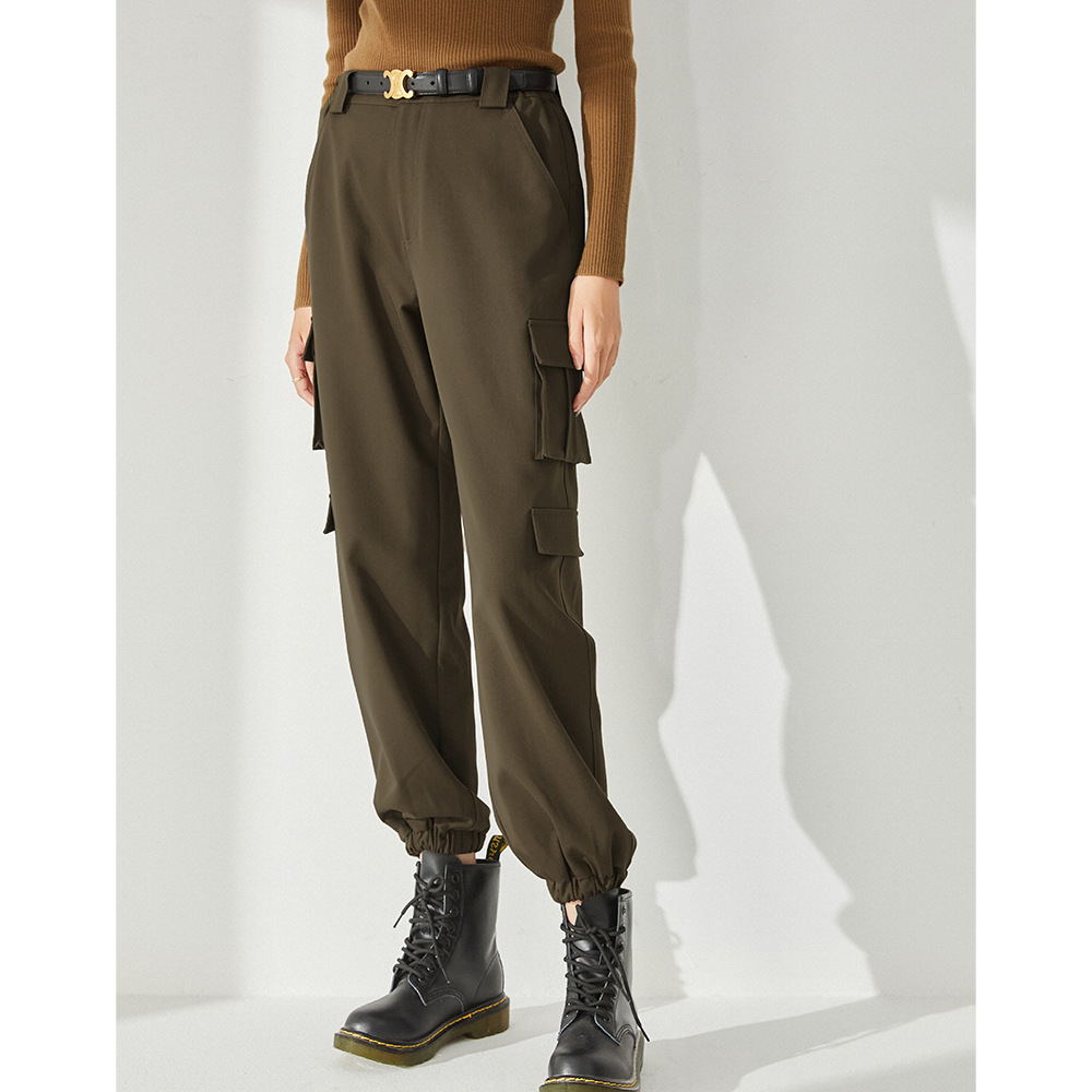 Shenghong の新しい痩身脚小さなカジュアル大きなポケット弾性ウエスト作業服ストレートレッグ女性のパンツ 11130