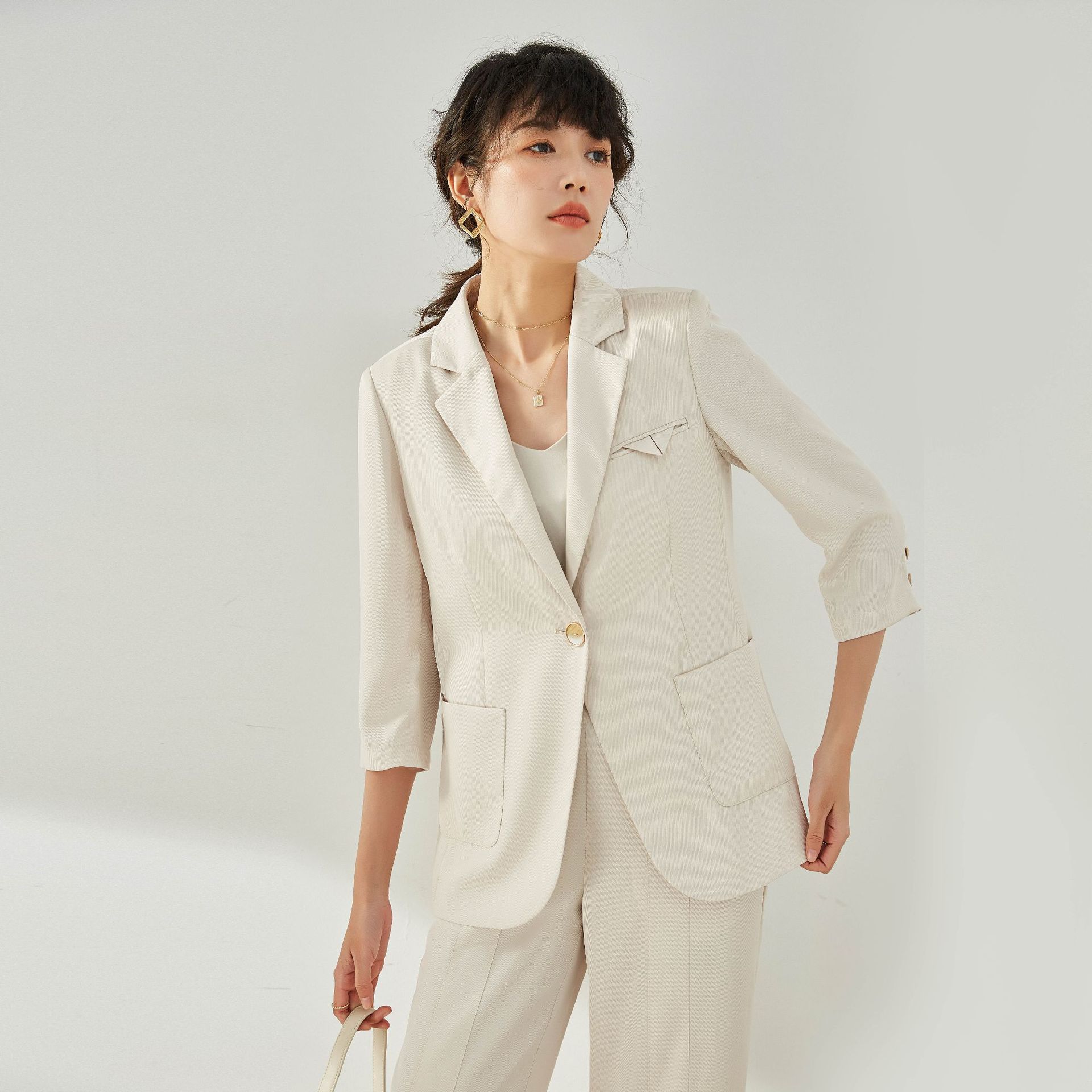 盛宏23春の新型酢酸垂れ感がゆるい中長タイプのカジュアルスーツ女性12811スーツ12812