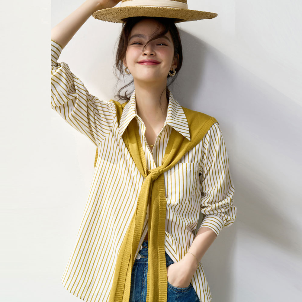 盛宏厳選25秋新作シンプル気質ストライプニットショール2点セット気質長袖シャツ13971
