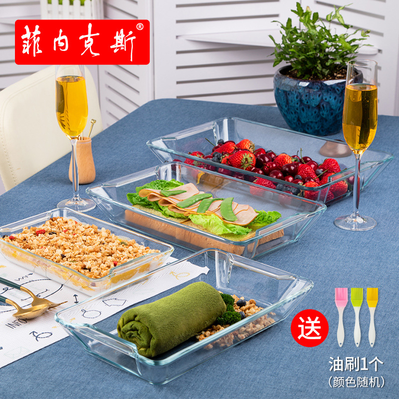 フェニックス強化ガラス内耳長方形蒸し魚皿焼き皿家庭用新商品クリエイティブ食器