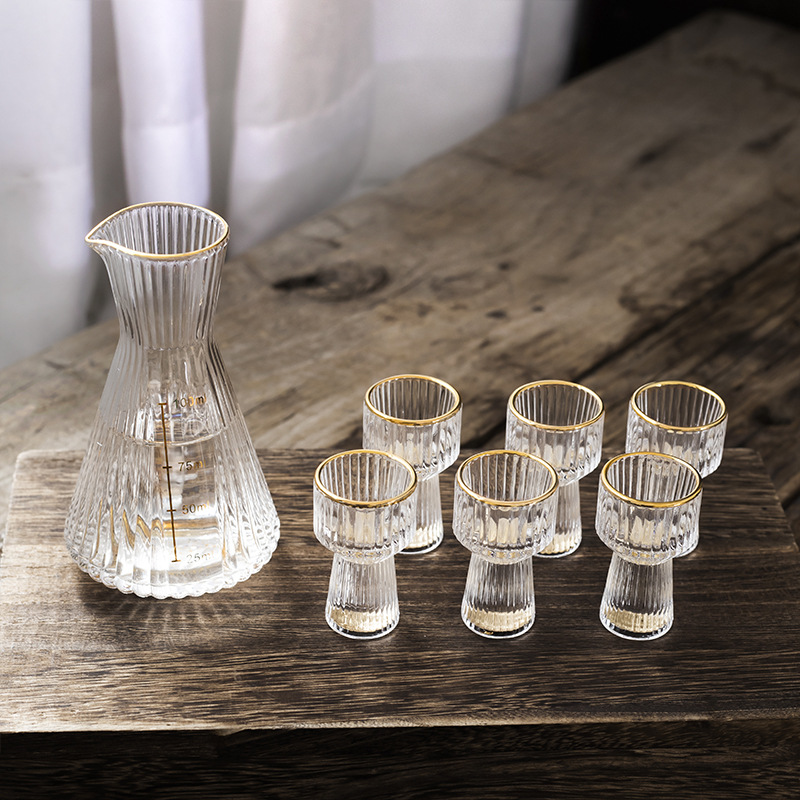 ストライプ白杯セット家庭用ガラス分酒器分流トランペット一口杯中国式創意白酒酒杯