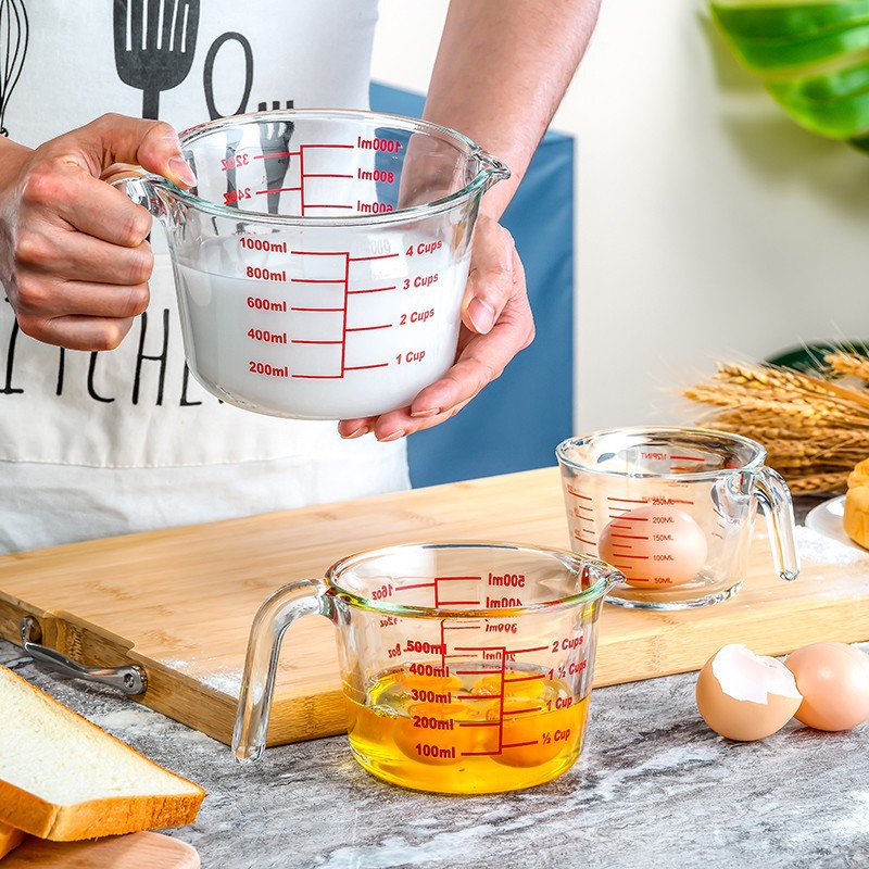 台所用品焙煎ガラス計量カップ透明帯目盛り付き厚手高ホウ素ガラス計量カップ家庭用セット