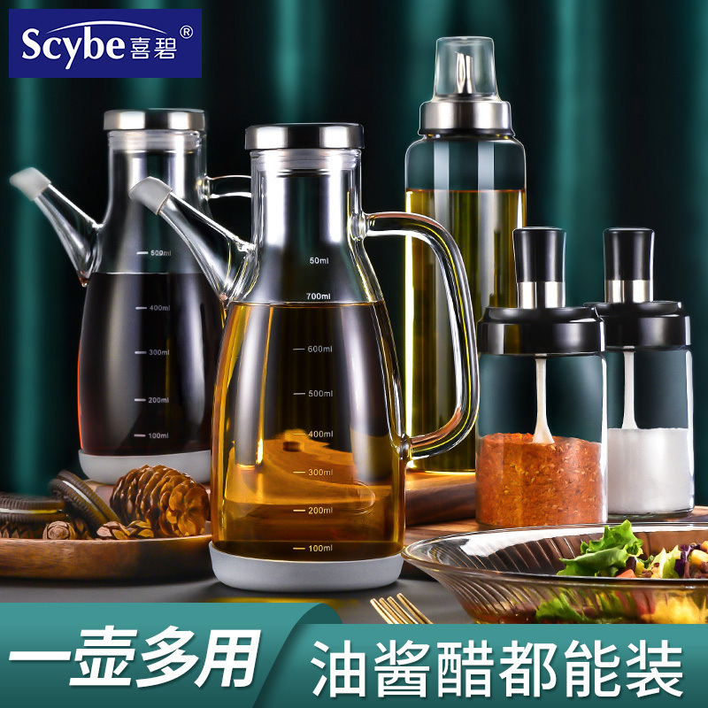 喜碧耐高温油壺高ホウ素シリコンガラス油壺調味料瓶油瓶油壺醤油瓶漏れ防止計量油壺