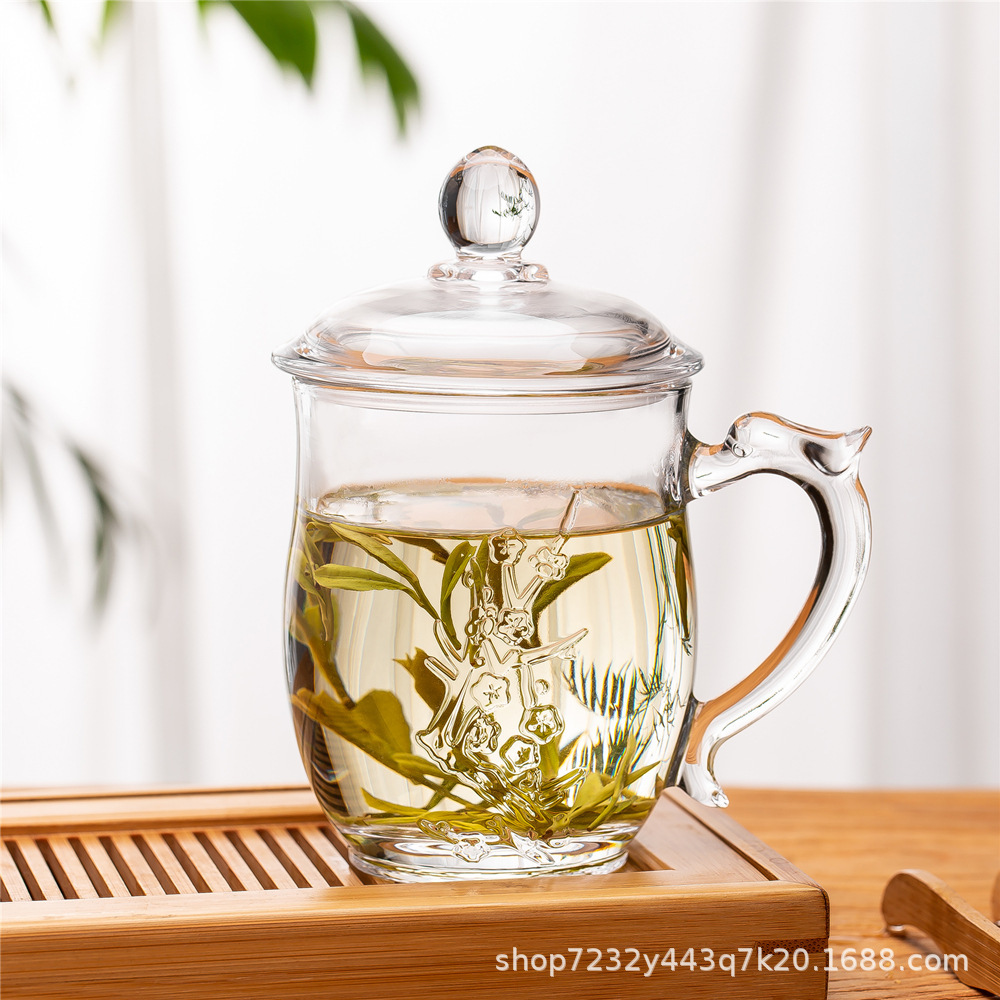 ガラスの厚い耐熱蓋付きの大容量オフィスの男性女性のお茶のコップの家庭用セット