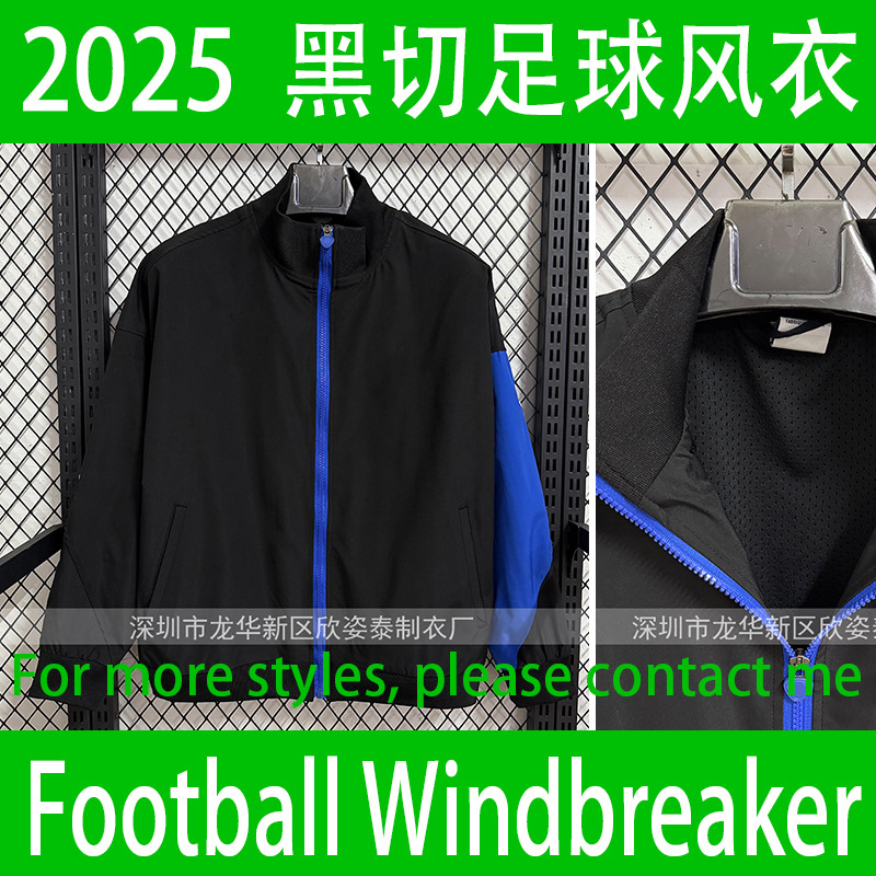 ブラックカットフットボールウィンドブレーカー2026チェルシーブラックフットボールジャケットウインドブレーカームスヤン