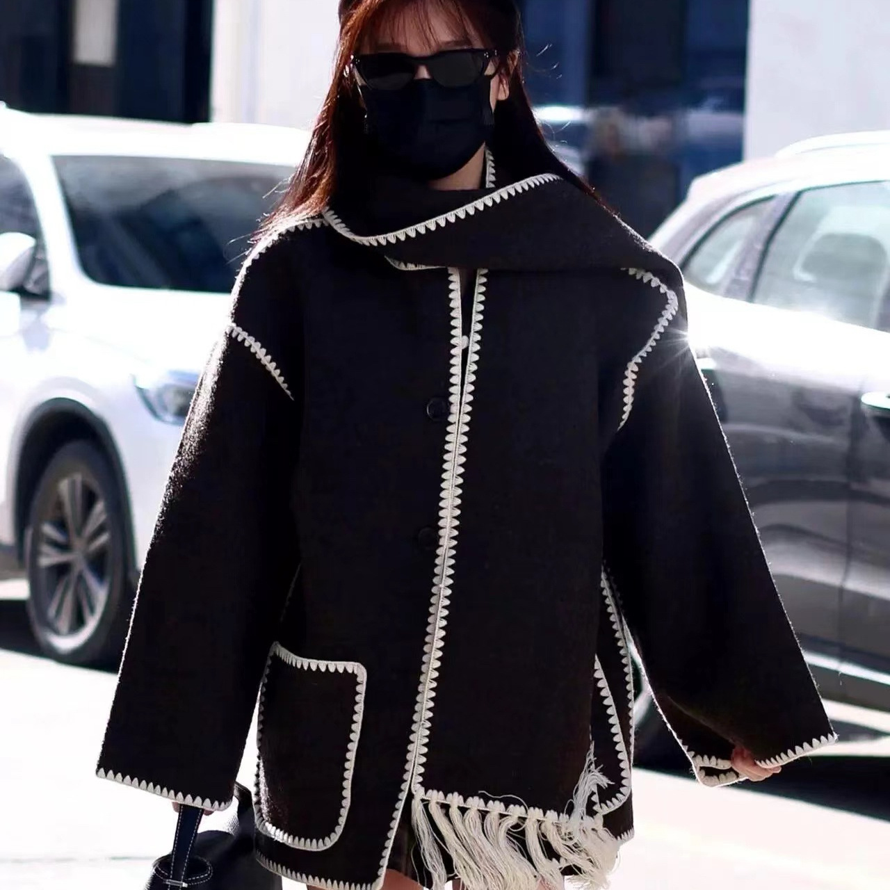 2024秋冬のゆったりとしたカジュアルなコートの小さい香りの毛のコートの女性の厚いマントのマントの中で長いタイプの高級感があります。