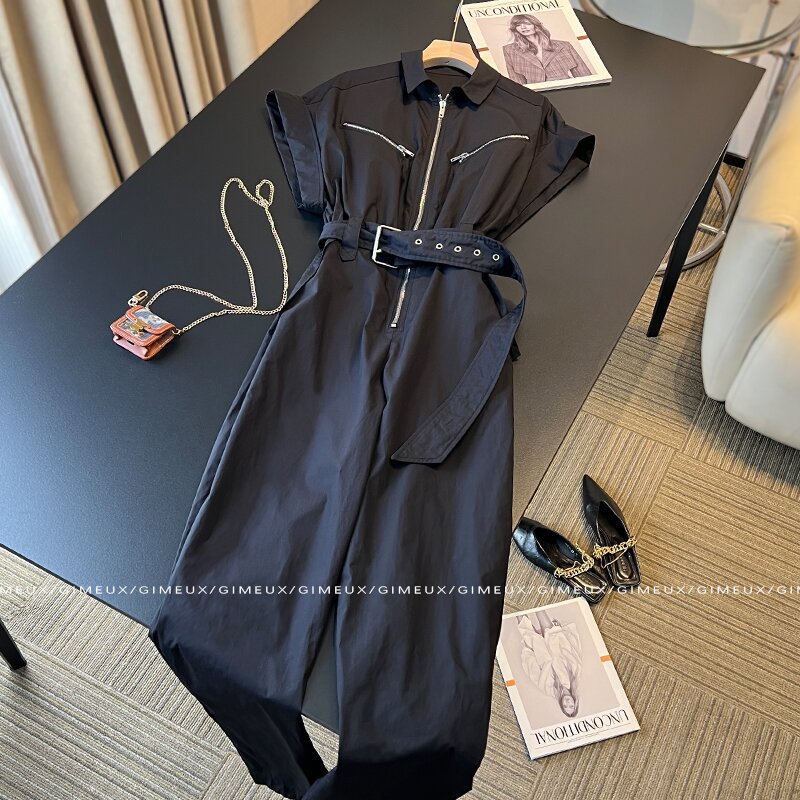 黒は痩せている新製品のスーツのワンピースの女性の夏の2024レジャー風は腰のズボンを収めます。