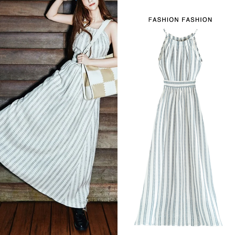 グレーストライプスーツ2024夏新型ノースリーブキャミソール上着半身スカート2点セット