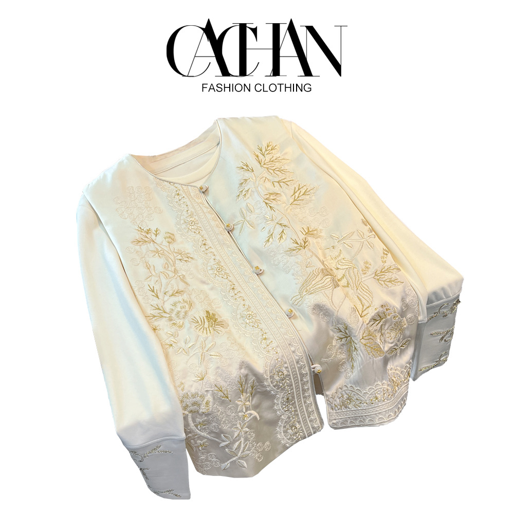 2025 早春の新中国風重工業刺繍優しいガーリースプライシングジャカード斜め前立てトップ
