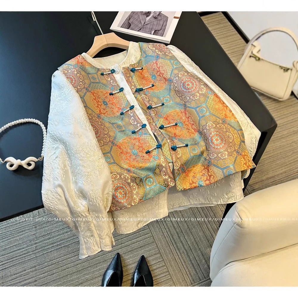 高級感重ね着気質上着セット女性新中国式ジャカード国風馬甲内着シャツ2025春新作