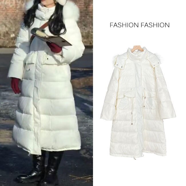 許半夏の白い腰の大きい毛の襟の長い高級感は街のダウンジャケットの女性を揚げます。