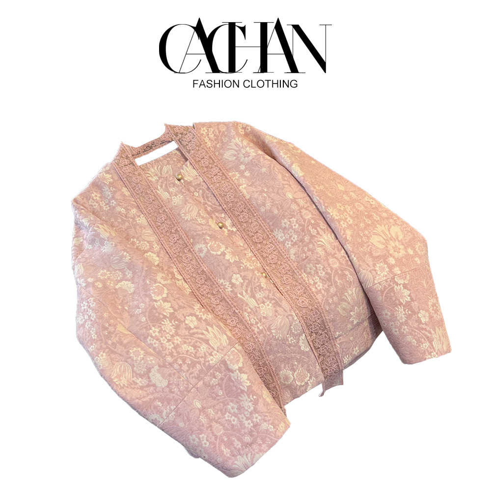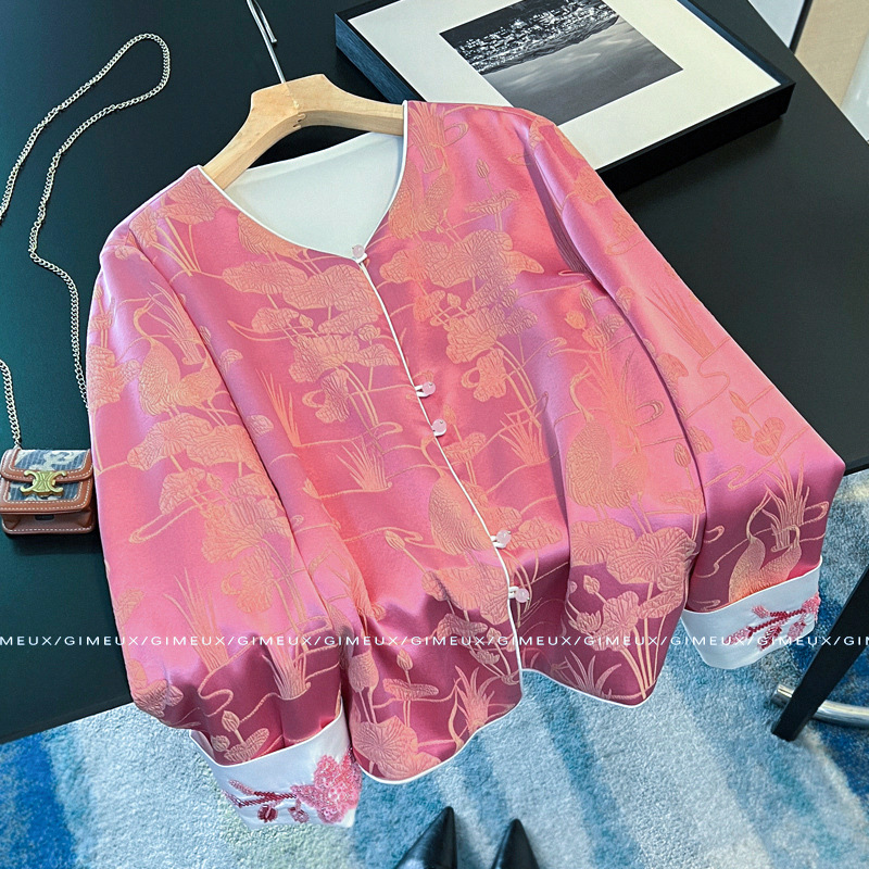 新しい中国風のピンクのコート 2024 新しい女性のハイエンドジャカード気質美しいレトロなスタイルのトップ