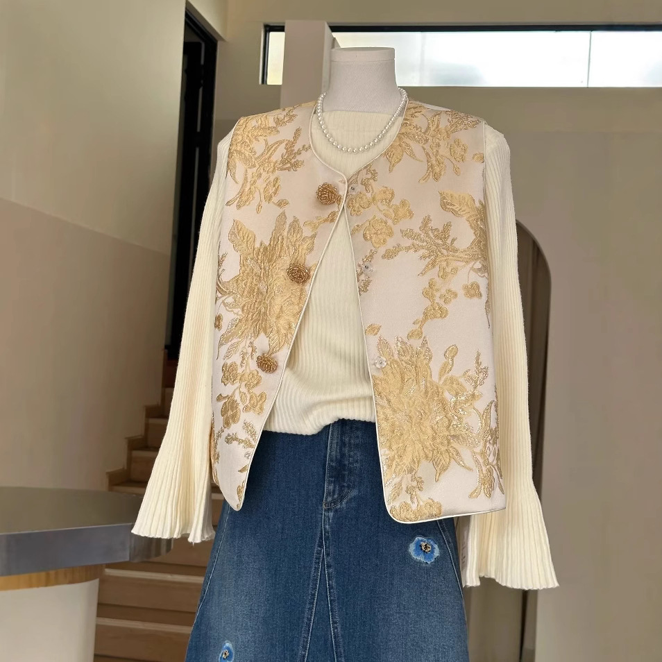 2025春の新型女装軽国風刺繍ファッション重工デザイン感ファッション大気ゆるいベストコート