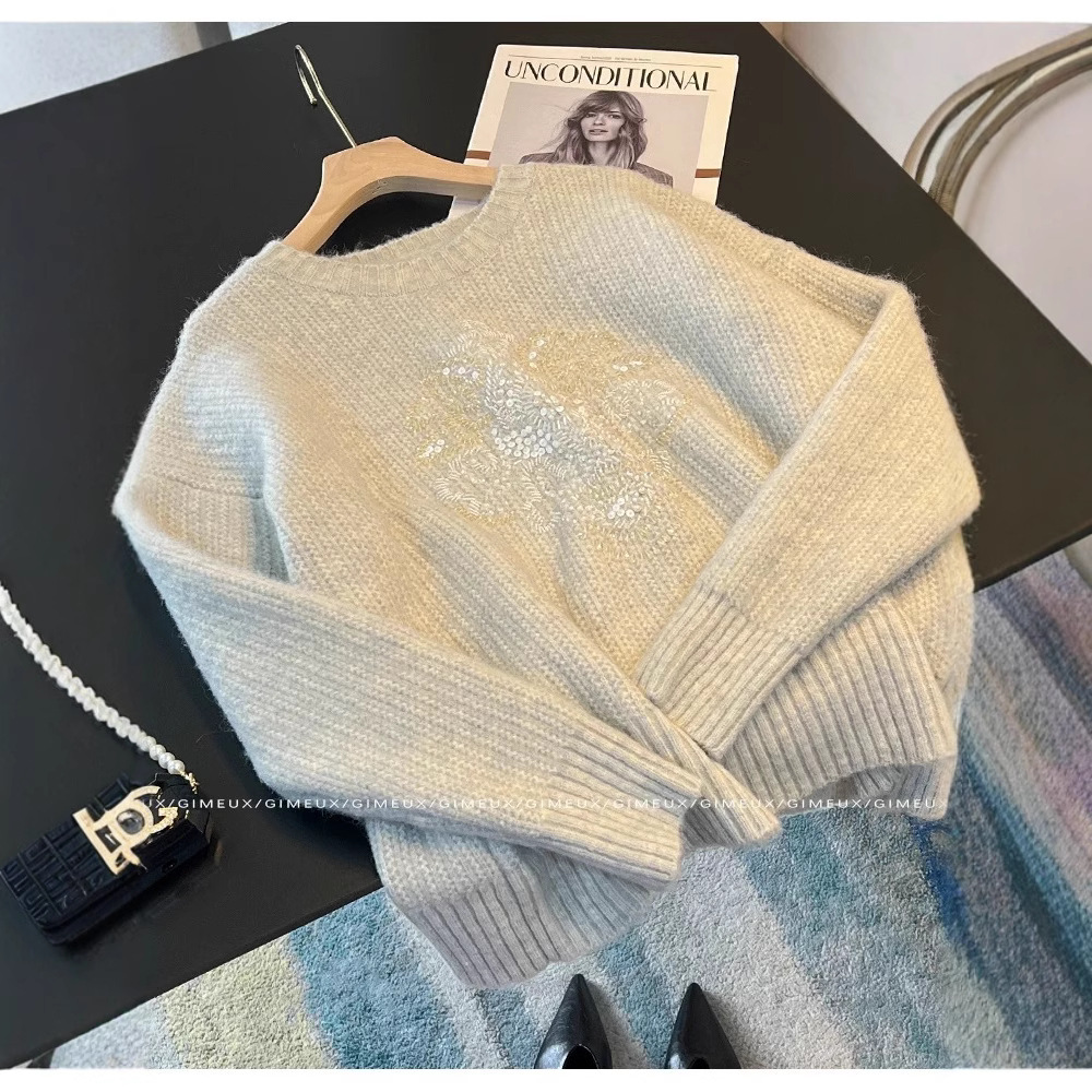 韓国系のデザイン感が独特で、超綺麗で厚いセーターの女性2024秋冬の新型の高級感があります。