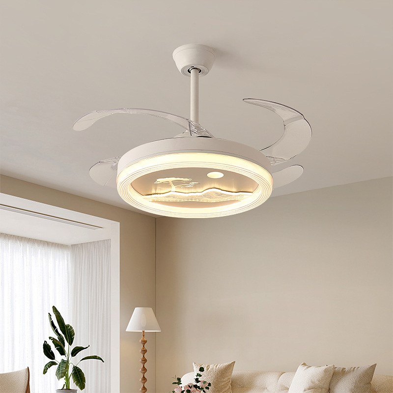 天井一体型寝室用ファンライト、クリーム系リビングルーム、ダイニングルーム、リビングルーム、寝室用扇風機ライト、新作シンプル扇風機ライト