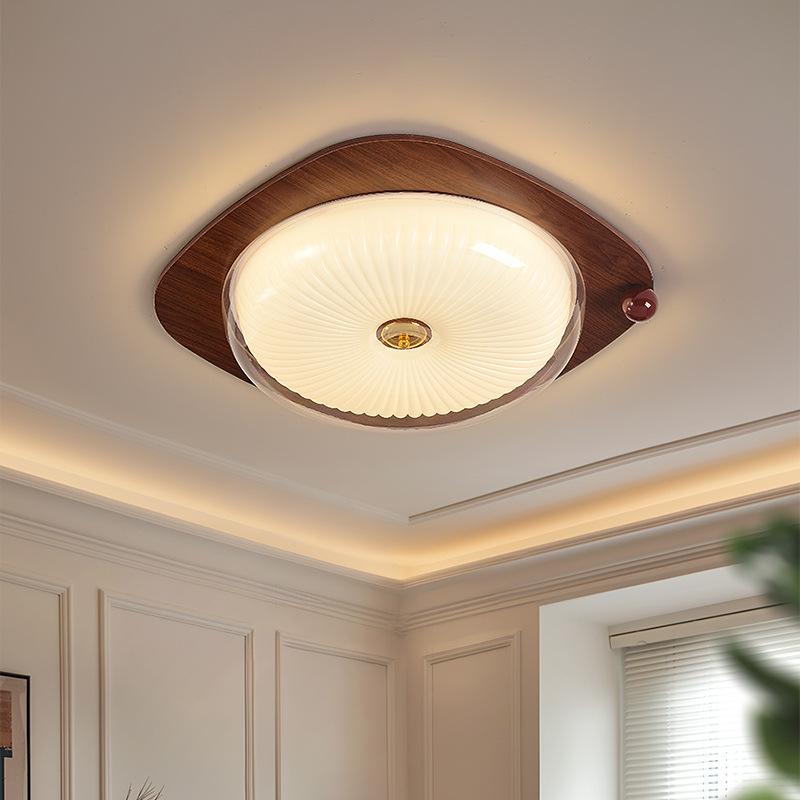 フレンチスタイルのアンティーク寝室用シーリングライト、レトロなウォールナット材の玄関・バルコニー用、目に優しい書斎用ライト、シンプルな寝室用シーリングライト