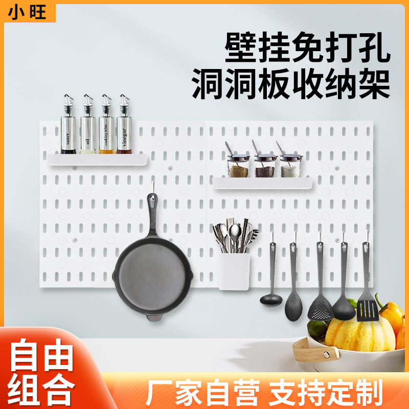 穴あきボード収納ラック 家庭用キッチン 穴あけ不要 壁掛け収納ラック リビング装飾収納