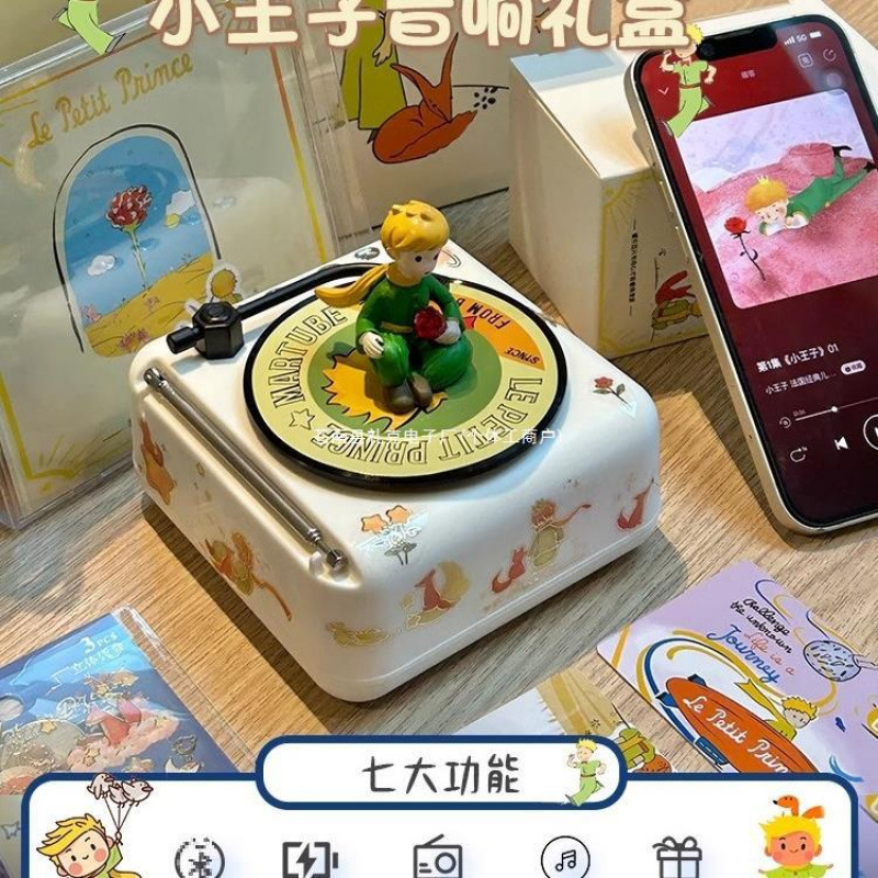 小王子レコード機レトロな黒ゴムbluetoothオーディオ小型スピーカーの誕生日に男の子と女の子の友達の親友を送ります。