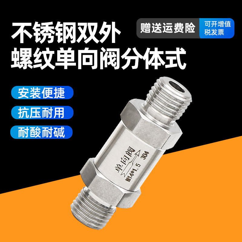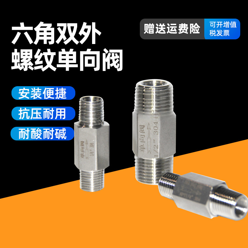 304ステンレスシングルバルブ2分4分ダブル外糸六角逆止弁1/4 1/2外ねじ逆止弁