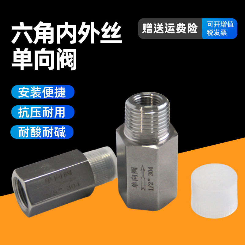 304ステンレス内外糸単方向弁六角逆逆止弁1/2ねじ1/4内入外逆流防止弁